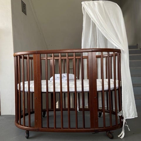 Vi säljer vår Stokke Sleepi Mini V3 inklusive expansionsdel till nästa storlek (för användning när barnet börjar sitta, ca 6 månader).