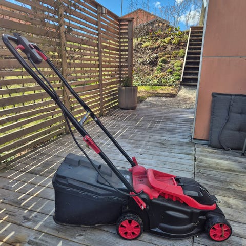Black & Decker gräsklippare med klippbredd 32 cm i svart och orange utförande. Elansluten modell med uppsamlare baktill. Passar för klippning av mindre till medelstora gräsmattor. Handtag upptill för enkel förflyttning och förvaring.