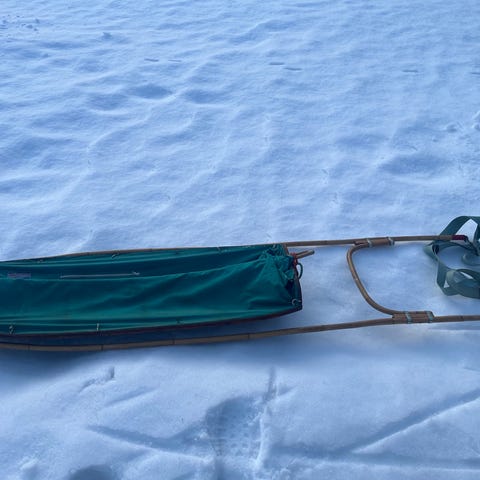 Mått c:a 200x50 cm. Tillverkad av glasfiber. Kan kompletteras med sele och skaklar.