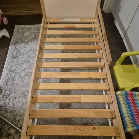 Sängramen har en perforerad botten och är avsedd för användning med madrass. Passar som två enkelsängar i sovrum, gästrum eller fritidshus och sätts lätt ihop till en stadig våningssäng.