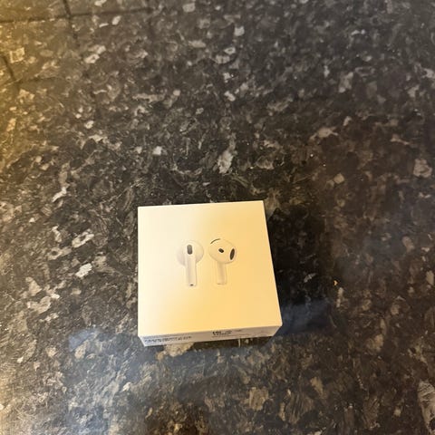 Earpods gen 4 hörlurar i vit färg. Trådlösa in‑ear-hörlurar med aktiv brusreducering (ANC). Levereras i originalförpackning med information om modell A3078 och laddning via USB‑C. Passar för användning med kompatibla Apple-enheter och andra enheter som stödjer Bluetooth-anslutning.