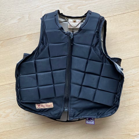 Racesafe Back on Track EquiGuard säkerhetsväst i svart. Använd men hel och fräsch. Storlek child’s large long