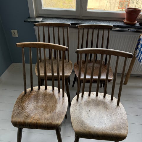 Fyra pinnstolar med patina som verkligen ger rätta känslan till rummet…
