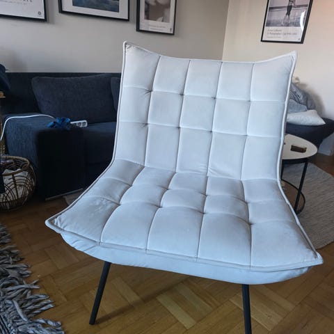 Fåtölj Ellos, ljusblå sammet, Stockholms centrum