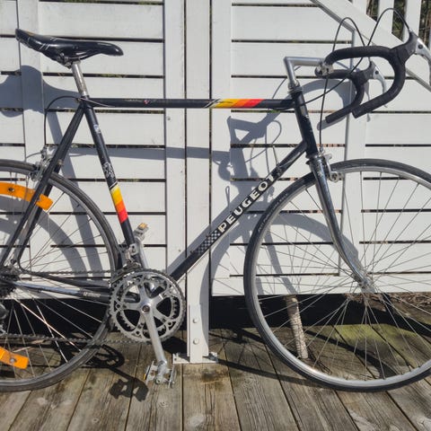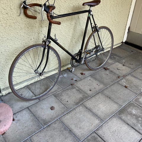 Bugatti racer extremt ovanlig racer som aldrig använts på allvar bara körts runt kvarteret vid några tillfällen som ny hängt mestadels i taket i en cykelaffär hela sitt liv så den behöver en service förstås men brukaren blir nog själv i gänget när dom ska ut kostade multum som ny förstås med det namnet några nötskador tyvärr på ramen efter upphängningen i många år och däcken är ett osäkert kort men naturligtvis bästa skick f.ö