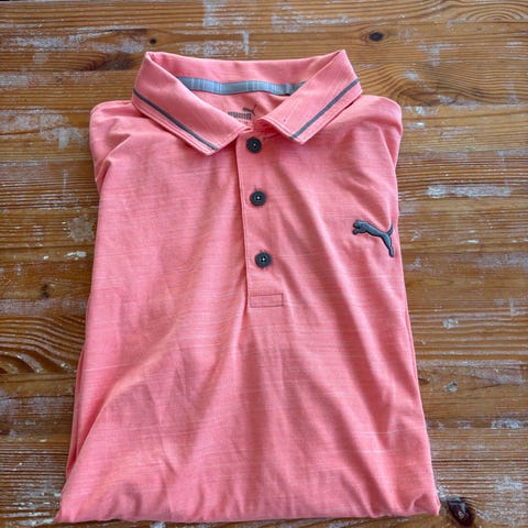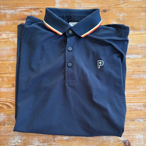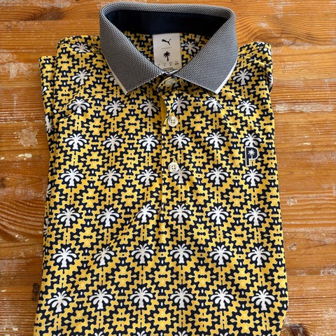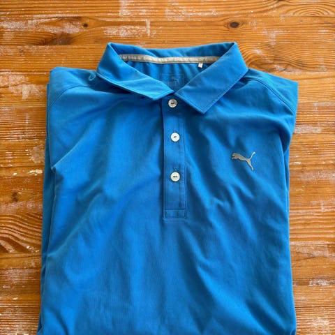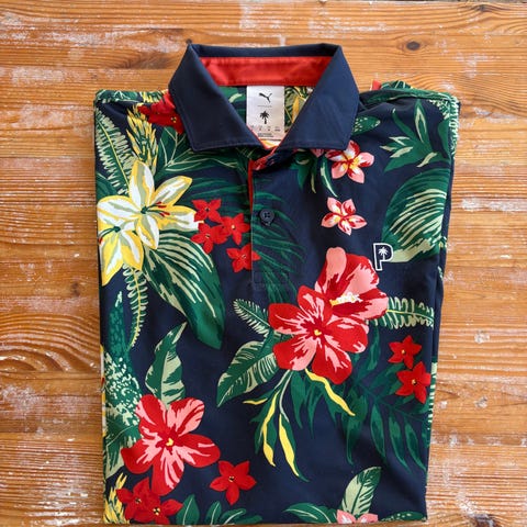Puma pikétröja i marinblå färg med blommigt mönster och små prickar. Krage med kontrastfärg på insidan och knappslå med flera knappar framtill. Tröjan har kort ärm och Puma-logga på bröstet. Passar som vardagsplagg eller fritidströja.