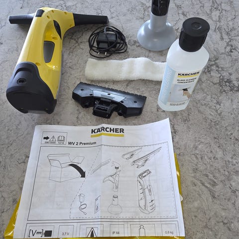 Kärcher EDI 4 elektrisk isskrapa för bilrutor i färgen gul/svart. Utrustad med roterande skivskrapa som avlägsnar is från bilens rutor. Enheten laddas före användning och används genom att trycka den mot rutan så att skivan roterar. Instruktioner på enheten och förpackningen visar hur isskrapan laddas, startas och används samt att rutorna ska vara rengjorda före avfrostning. Levereras med originalförpackning enligt bild.