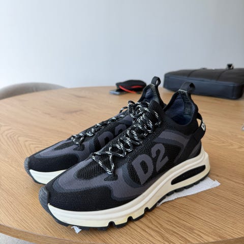 Armani EA7 sneakers i storlek 43. Modellen är i svart med röda detaljer och vit mellansula med EA7-logga. Ovandel i textil och syntet med snörning framtill. Yttersula i gummi med räfflad undersida för bättre grepp. Passar som vardagssko eller för lättare fritidsaktiviteter.