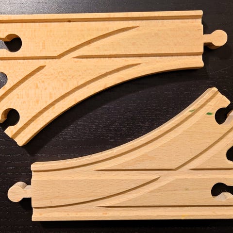SĂ€ljer 3 st stĂ€llbara trĂ€vĂ€xlar (okĂ€nt mĂ€rke, dĂ€rför BRIO-kompatibla). De har en blĂ„ plastspak/slider sĂ„ man enkelt kan vĂ€xla spĂ„r â och de funkar extra bra Ă€ven för batteritĂ„g som kör sjĂ€lva. đđ