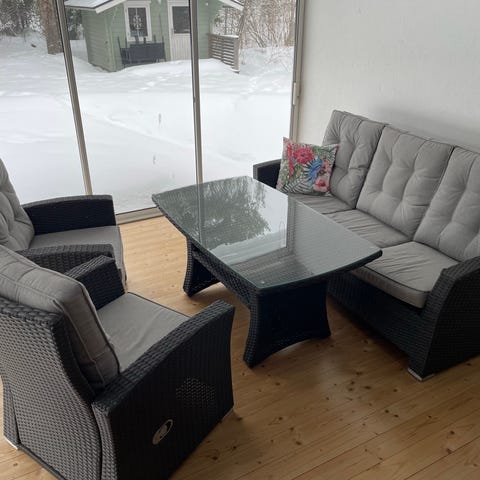 Har stått i uterum under tak. Fint sick.