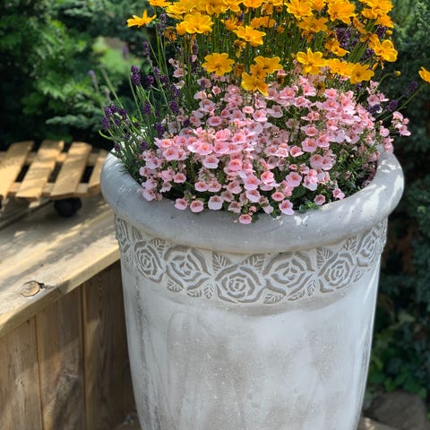 Fyrkantiga krukor för utomhusbruk i svart metall. Två olika storlekar . Den stora höjd 45cm bredd 35cm. Den mindre höjd 40cm bredd 30cm. Ytan visar spår av användning och väderpåverkan men blir som nya med tvätt och svart färg.