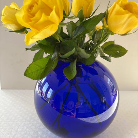 En mycket vacker och stämningsfull rund ljuslykta i färgat glas, anpassad för vanliga värmeljus. Lyktan har en djupt blågrön ton (petrol/turkos) som ger ett fantastiskt fint sken när den är tänd. Modellen har en nedsänkt glaskopp i mitten och en öppen botten, vilket är en klassisk svensk retrodesign från 1960- eller 1970-talet. En perfekt färgklick i inredningen!
