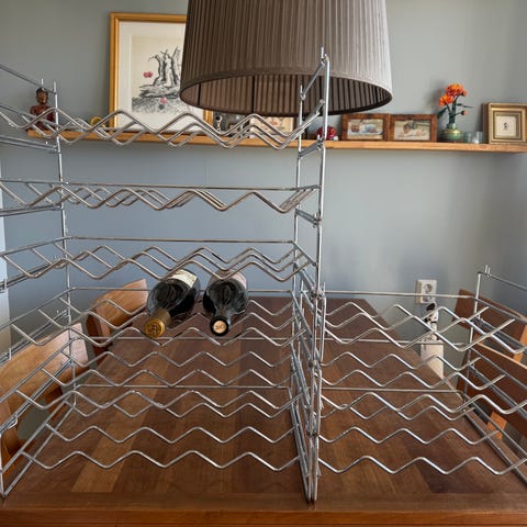 Mycket dekorativ vintage Golvstående vinställ i smidesjärn för 60 vinflaskor (5x12). Fullständigt pulverlackerat för att hålla i generationer. Klassisk stil. Låsbara dörrar (hänglås). En vacker detalj i ditt hem. Höjd 150cm. Bredd 54 cm, djup 28 cm. Märkt Bekyttet Viuf Vinreoler. Hämtas i Stockholm.