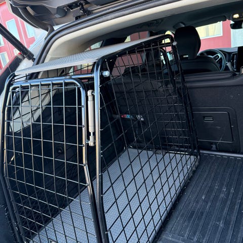 Passar större bil för säker förvaring och transport av hund.