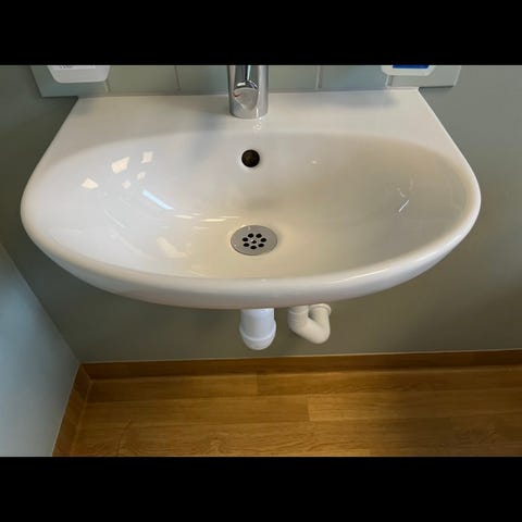 Tvättställsskåp med mjukstängande lucka. Enkel montering med väggskena och justerbara upphängningsbeslag. Förberett för golv- och väggavlopp