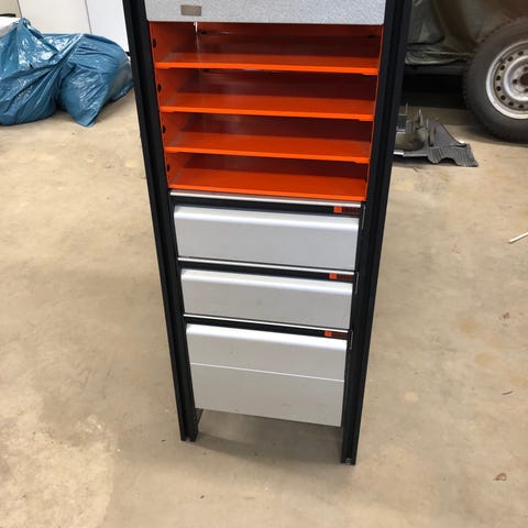 Metall hurts med 4 lådor i grön och grå färg. Överdel med upphöjd kant som kan användas som avställningsyta. Lådorna har metallhandtag och ger plats för förvaring av exempelvis verktyg, smådelar eller kontorsmaterial. Passar i garage, verkstad eller förråd där man behöver robust förvaring.