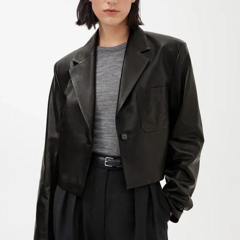 Zara jacka för dam i storlek S. Jackan är svart och tillverkad i fuskläder. Modellen har hög krage med knäppning, knappdetaljer vid ärmslut och en något lösare passform. Passar som ytterplagg under mildare väder och kan användas både till vardags och enklare festliga tillfällen.