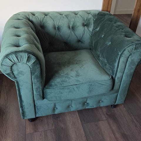 Fåtölj i vit teddyklädsel.