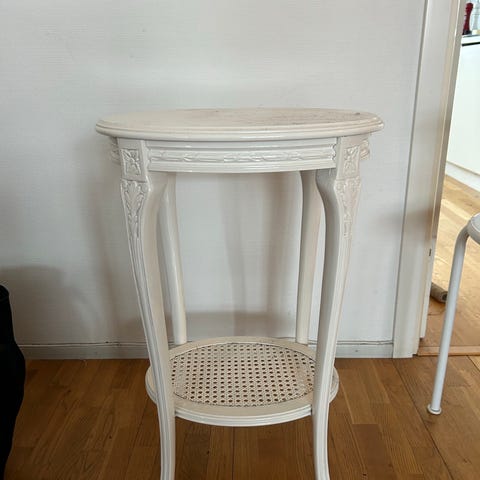 Charmig och stabil rund blompiedestal i rotting med glasskiva.