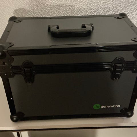 Svart med metallförstärkta kanter och hörn. Lucka på båda sidorna. Utrustad med bärhandtag. Rackskruvar ingår.