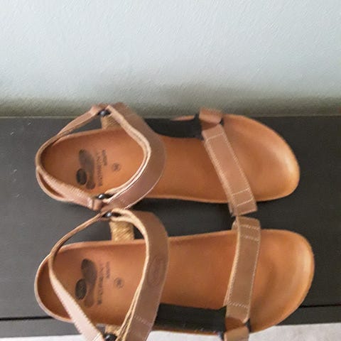 Finns vid Slussen TB Götgatan/Sankt Paulsgatan. Ljus-bruna lädersandaler från Clarks mycket nära nyskick. Bekväma med mjukt dämpande gummisula. Storlek 42 men som 41, 26 cm, passar en smal eller normalbred fot.