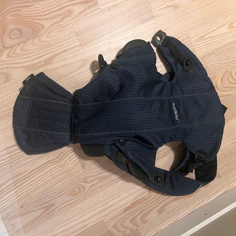 BabyBjörn bärsele i vit mesh, tillverkad i 100 % polyester. Selen har justerbara axelremmar och midjerem för anpassning till bärare och barn. Materialet är luftigt nät som ger god ventilation. Bruksanvisning med olika bärpositioner är tryckt på insidan av selen. Tvättråd enligt etikett: tvättas separat, får inte strykas.