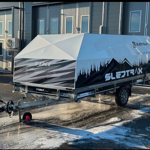 Perfekt skotersläp som rymmer tre full långa skotrar utan problem!