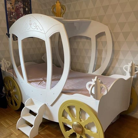 Barnsäng utdragbar i vit färg. Sängen är utformad med höga gavlar och sidor för ökad trygghet för barnet. Utdragsfunktionen gör att liggytan kan anpassas efter barnets längd. Passar som övergångssäng mellan spjälsäng och fullstor säng. Materialet är trä eller träbaserat material med vit ytbehandling. Sängen är 120-150 cm lång och 60 cm bred.