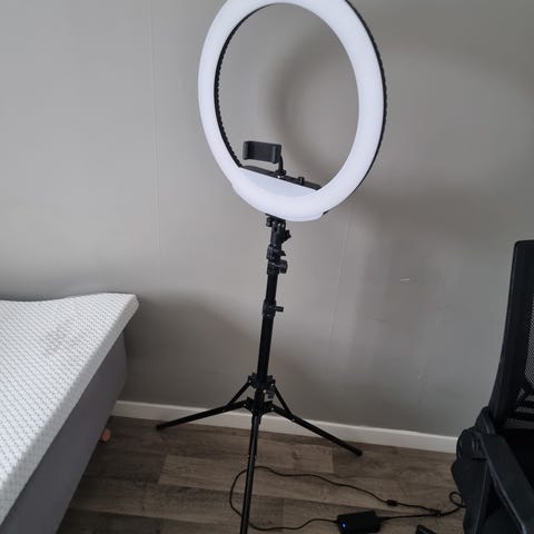 Ringlight LED med 3st färgtemperaturer, justerbar ljusstyrka med 12 steg via fjärrkontroll. Drivs via usb. Superfint skick, bara använd en gång.