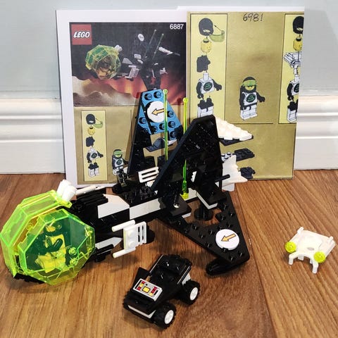 LEGO Blacktron II 6933 Spectral Starguider från 1991. Byggsatsen innehåller en stor rymdbil med sex hjul, två avtagbara moduler och tre minifigurer. Instruktionsbok utskriven från nätet ingår.