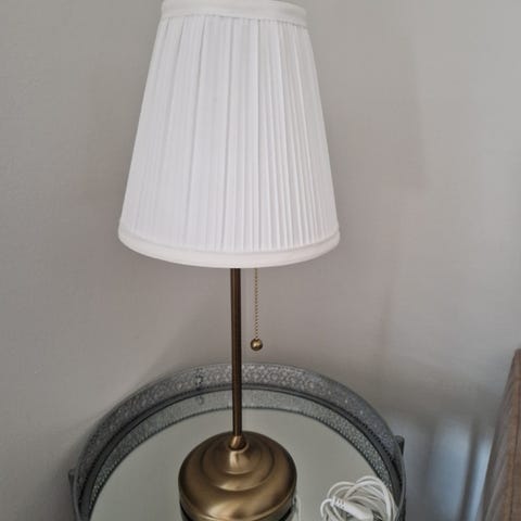 Bordslampa i guld med rosa skärm – Jättefint skick!
