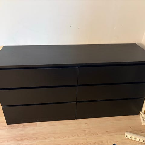 Säljer en rymlig svart byrå med 6 lådor som ger gott om förvaring. Passar perfekt i sovrum, hall eller vardagsrum. Stilren design och stabil konstruktion.