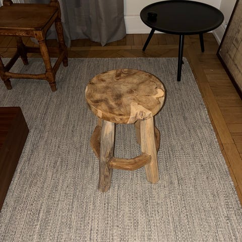 Säljer en stabil och dekorativ pall från Granit i massiv teak.