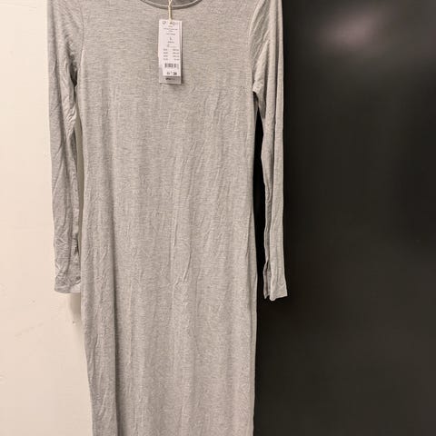 Grå melerad stickad klänning från Monki i storlek L. Stilren modell med trekvartsärm och dragkedja baktill i nacken. Klänningen har en rak passform och rundad halsringning. Bomull och viskos-blandning, så bra material som andas. Mycket fint skick!