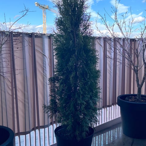 2x hybrididegran ’Groenland’ ca. 90cm hög i 40cm kruka med fat. Sorten har ett brett, upprätt växtsätt, de är tåliga, vintergröna, bra buskar som insynsskydd. Har vuxit bra under 3 år och är omplanterat i höstas med bra jord. Väldigt bra skick, inga skador eller problem men jag behöver skapa plats för nya växter. 200kr för en buske med kruka och fat.