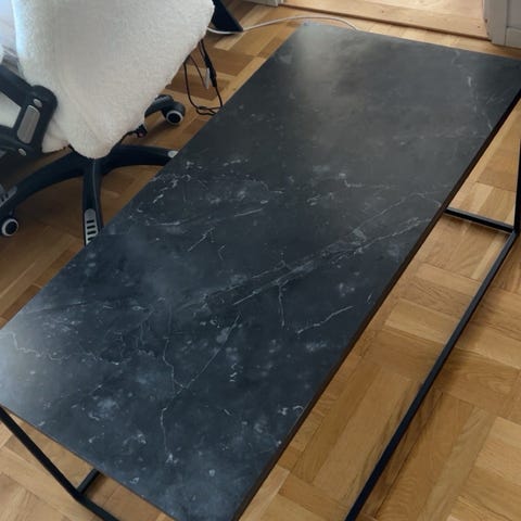 Fint marmorbord från Mio säljes. Grå/vitt randigt marmorskiva med silver mässing ben. Mått 120 x 60 x 47.