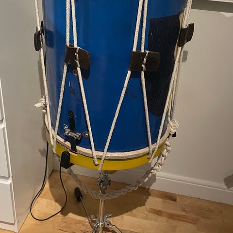 Trumstol med rund sits i svart material. Justerbar höjd med metallstativ och tre ben med gummifötter för stabilitet. Spelar inte trummor längre därav säljer den. Var beställd från Thomann