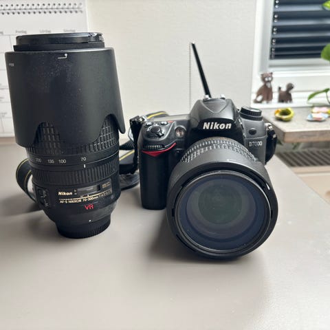 En fin Nikon D7000 (DX-format) inkl Nikon 18-105 VR objektiv, motljusskydd, batteri, batteriladdare och kamerarem med cirka 1600 exponeringar.