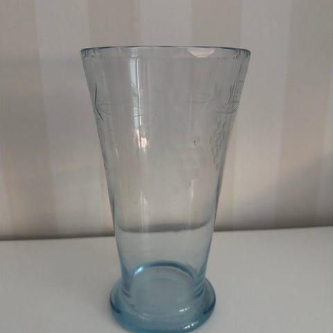 Färgglad retro vintage glasskål i rött och gult. Skålen har en vågig kant. Höjd 17 cm, diameter 21-24 cm.