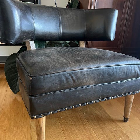Loungefåtölj trä äkta läder skinn stol fåtölj brun