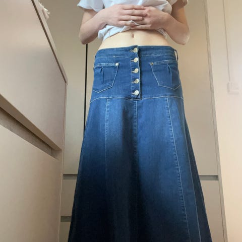 Perfekt till håret! En mycket vacker vintage duvblå kjol. Ännu finare i verkligheten. Otroligt vackert & sagolik passform med dem finaste nyansen av blå som längre inte finns att hitta bland moderna plagg. Passar året runt & till alla slags toppar även en tjocktröja eller en kort vit topp. Även dragkedjan är vacker & knapparna samt insidan av kjolen. Ha den till våren, till fest, bröllop, vardags, dans, hemma eller på din födelsedags fest.