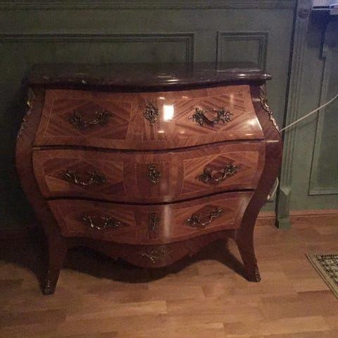 Byrå med marmorskiva gul brun