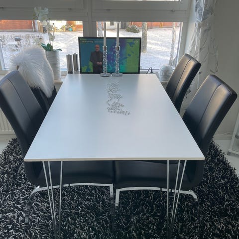 Matgrupp med bord IKEA Melltorp och 4 st stabila stolar.