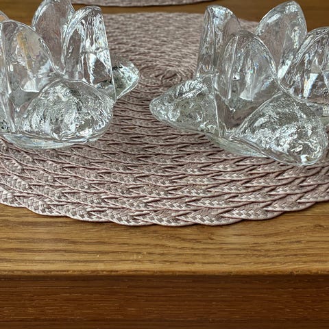 Kosta Boda ljusstakar i klart glas. Ljusstakarna har en rund form med strukturerad yta och är avsedda för mindre ljus, exempelvis kronljus eller värmeljus. Passar som dekoration på bord, fönsterbräda eller hylla i hemmet.