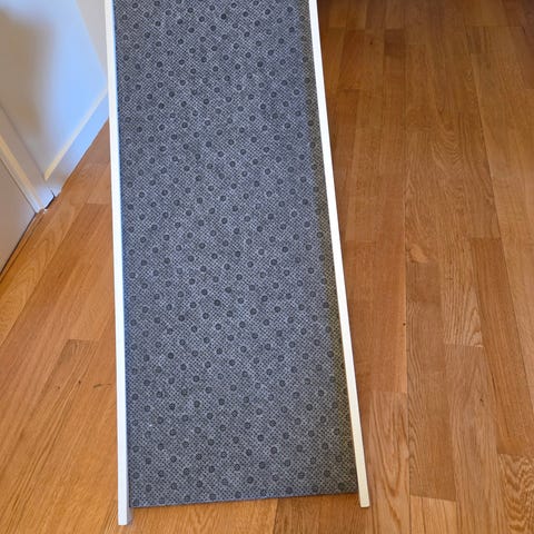 Hundramp som förenklar att hunden kommer upp i säng, soffa eller bil. Det är sandpapper på. Vår hund är liten och tycker inte om den. Hämtas i centrala Borås.