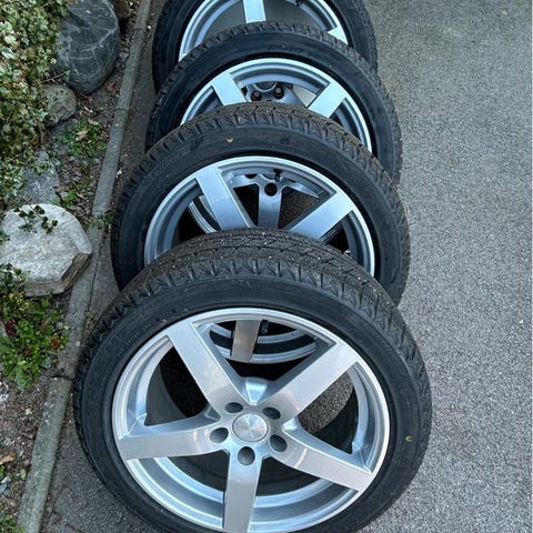 Bra fälgar Volvo Original 18 tum. Däcken (Nokian Hakka Black) är däremot slut. En hel del skrapskador från Södermalms trottoarkanter på fälgarna (har endast estetisk betydelse). Har suttit på en Volvo V60 D4 årsmodell 2017.
