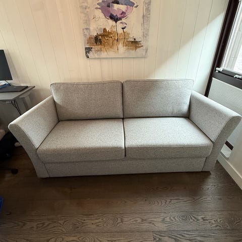 Bäddsoffa från Jysk till salu. Fint skick. Bekväm att sitta i och bäddas ut till en 140x200 säng, med förvaring inuti soffan.