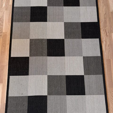 Rusta Kids matta använd på en husvisning. Mattan har vävd struktur med tuftade detaljer som ger en taktil yta. Passar exempelvis i barnrum, hall eller mindre vardagsrumsyta. Material och exakta mått framgår av etiketten på baksidan av mattan.