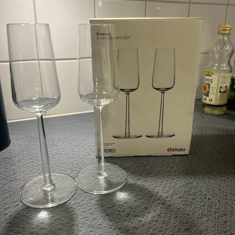 Iittala Essence vinglas i klarglas, för rödvin. Rymmer 45 cl. Tagit bort klisterlappen men de är märkta med iittala märke vid foten.