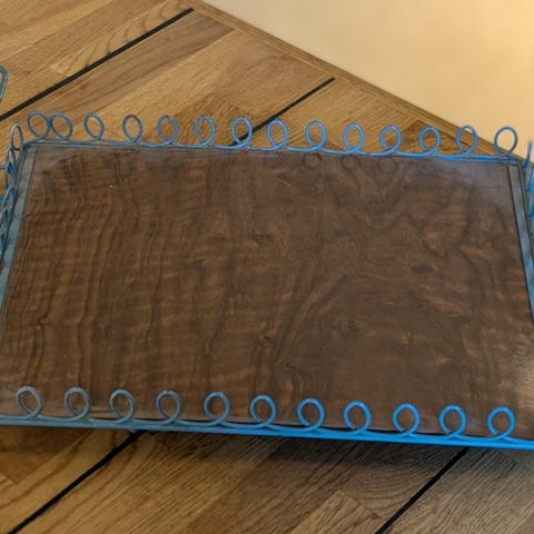 STRINGKORG i metall med överdrag i svart plast. Handtag i ljust rödbrunt.